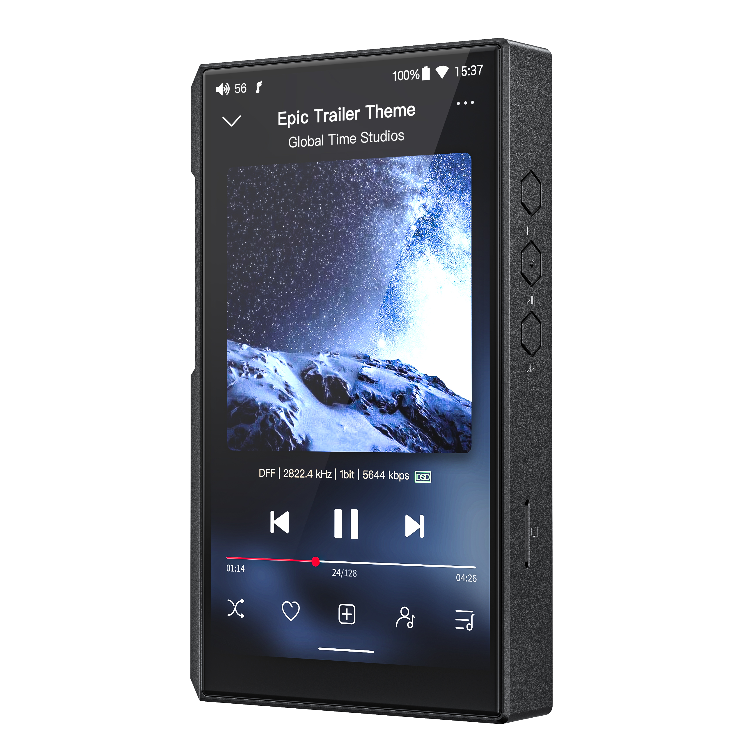 雙DAC ES9038Q2M高性能晶片性能更出色,音訊細節更豐富,本機解碼可支援到384kHz/DSD256,以及發燒級電源電路,讓聆聽更過癮 聲音更純粹,引用六邊形的蜂巢元素,搭配5.0英寸、720P高畫質顯示螢幕,不僅具備2.5/3.5/4.4mm音訊介面,還新增平衡LO輸出,耳機/耳擴都能搭配使用。