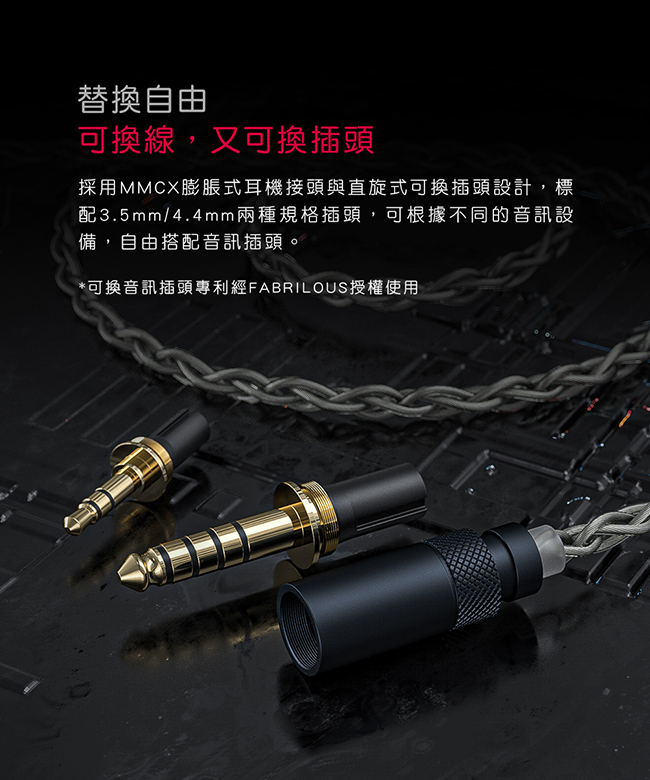 ● 旋鎖式可更換插頭(3.5/4.4mm)