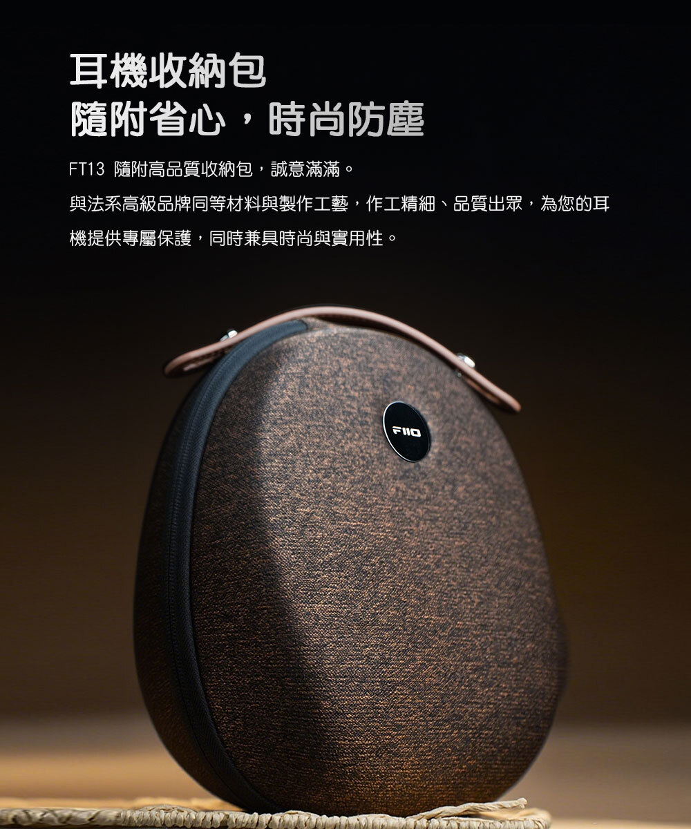 耳罩耳機收納包|FT13 隨附高品質收納包,誠意滿滿。與法系高級品牌同等材料與製作工藝,作工精細、品質出眾,為您的耳機提供專屬保護,同時兼具時尚與實用性。