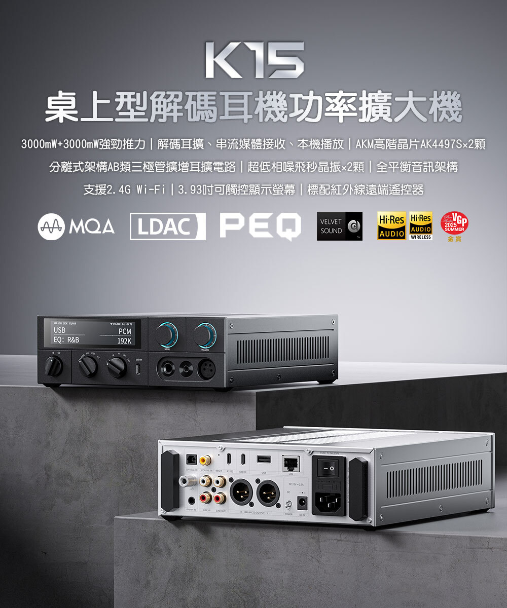平衡輸出|可接收平衡類比訊號並由 K15 放大。