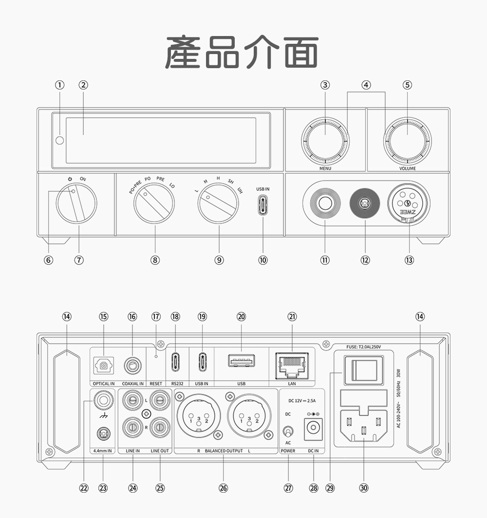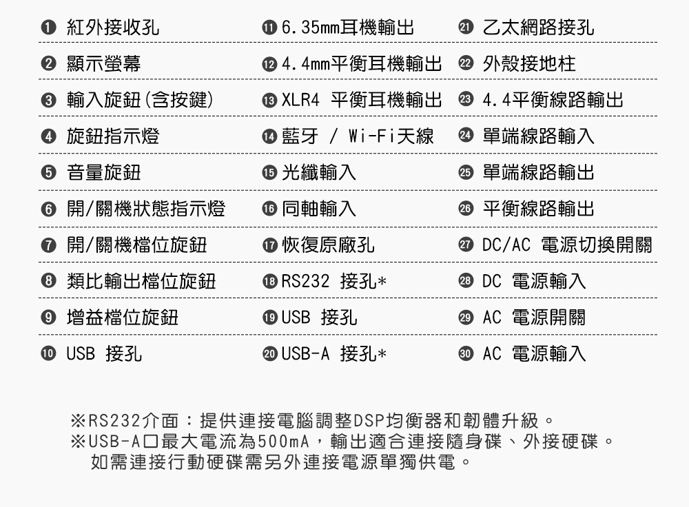 注意事項:本產僅包含K15主機*1、AC電源線*1、遠紅外線遠端遙控器*1、XLR4裝飾防塵塞*1、保險絲*1、USB傳輸數據線*2、耳機轉接頭*1、使用說明書*1,其他電腦、手機、耳機等皆為示意圖,不包含本產品包裝內。