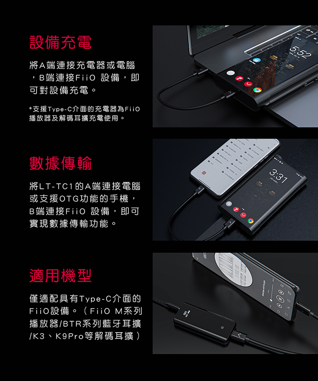 ● 適用FiiO M系列播放器、BTR系列耳擴以及K3、K9Pro