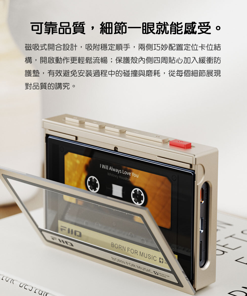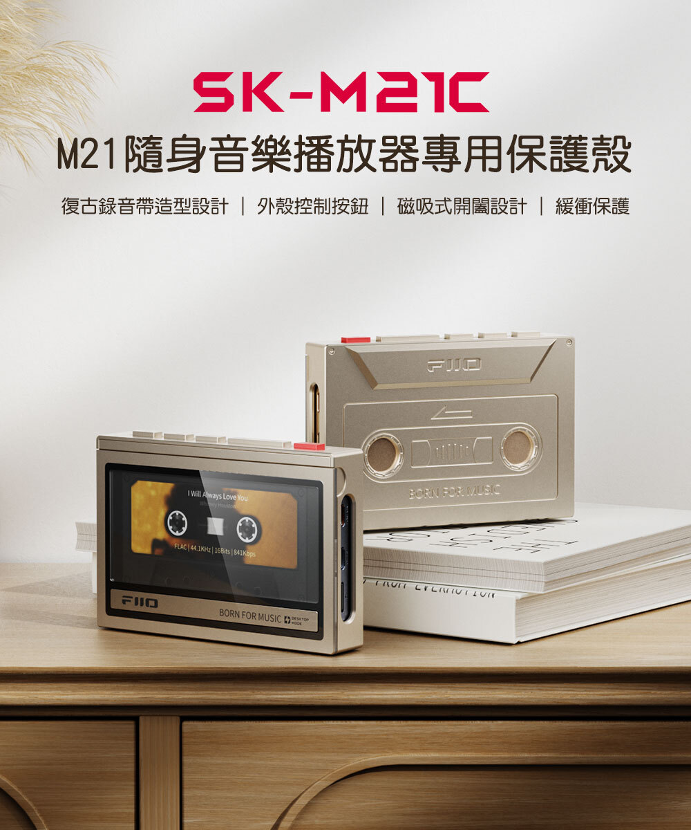 專為 M21 量身打造的復古錄音帶風格保護殼,精準開孔設計,完美貼合機身,操作不受影響。