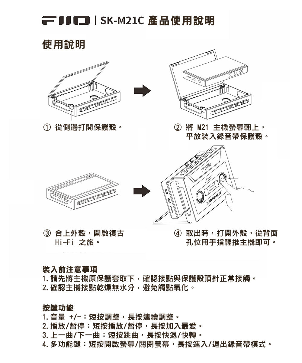 注意事項:本產品僅包含SK-M21C*1、說明書*1,其他播放器、耳機...等,不包含在本產品包裝內。