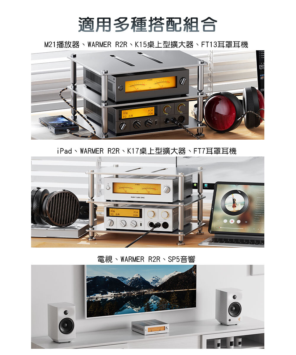 M21播放器、WARMER R2R、K15桌上型擴大器、FT13耳罩耳機